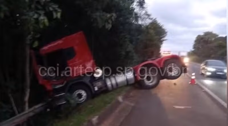 Na tarde de segunda-feira, 7 de abril, um acidente chamou a atenção na Rodovia Francisco Alves Negrão (SP-258), próximo ao quilômetro 257, em Taquarivaí, São Paulo. Uma carreta colidiu com a traseira de uma caminhonete, resultando na perda de controle do veículo maior, que acabou caindo em uma ribanceira. Apesar do impacto, não houve feridos entre os envolvidos, conforme informações da Agência de Transporte do Estado de São Paulo (Artesp).