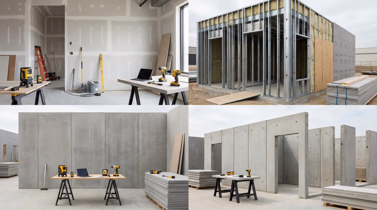 Já os painéis cimentícios e pré-moldados entregam durabilidade superior, sendo ideais para muros, áreas externas e projetos modulares. A escolha correta depende do uso, do orçamento e da velocidade desejada para a obra.