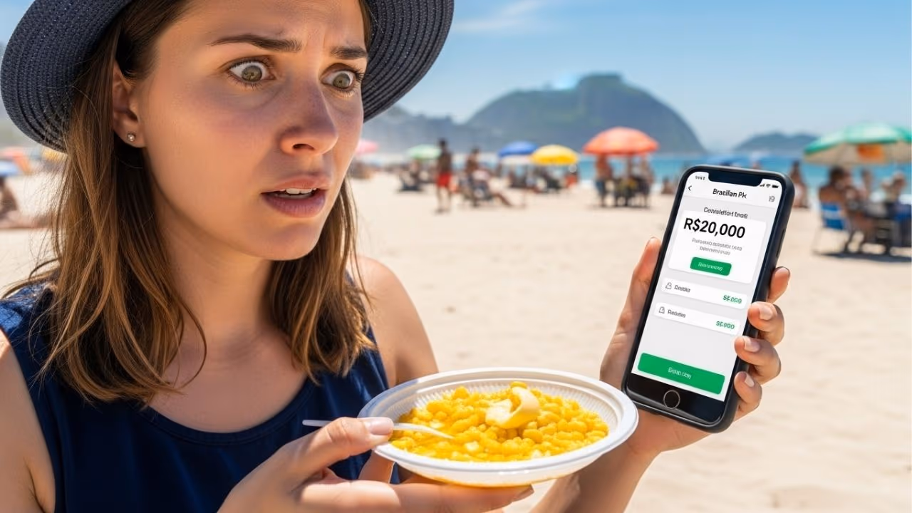 Diante da dificuldade com o idioma português e com a forma de escrita dos números, a turista aceitou a ajuda do próprio vendedor para digitar o valor no aplicativo de pagamento Mercado Pago. Nesse momento, o ambulante inseriu R$ 20.000,00 em vez de R$ 20,00, finalizou a transação e deixou o local logo em seguida.