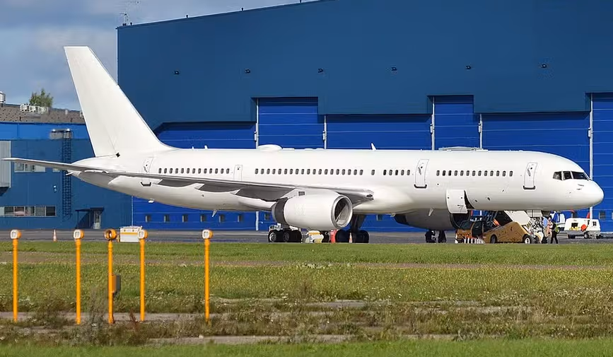 O avião não apresenta nenhum registro em sua fuselagem branca e é chamado no mundo militar como C-32B, um modelo modificado do Boeing 757-200.