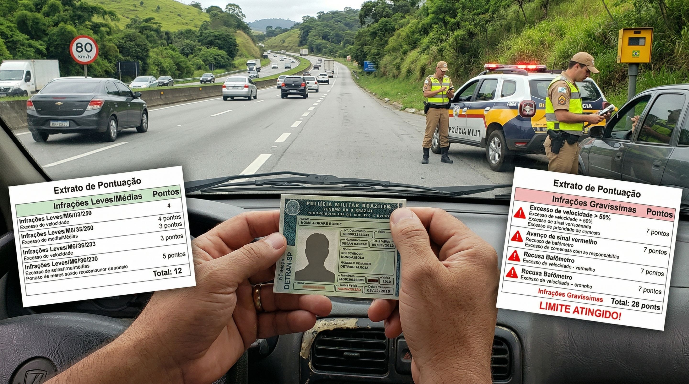 CNH suspensa por pontos: a regra das infrações gravíssimas explica por que alguns perdem com 20 e outros só com 40