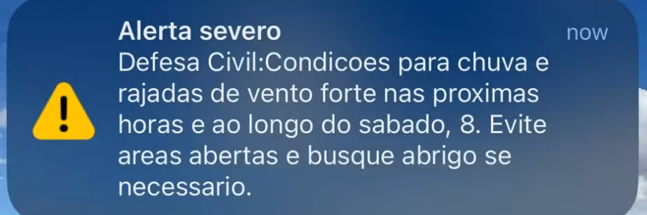 - Ainda segundo a Defesa Civil, as rajadas de vento podem chegar a: