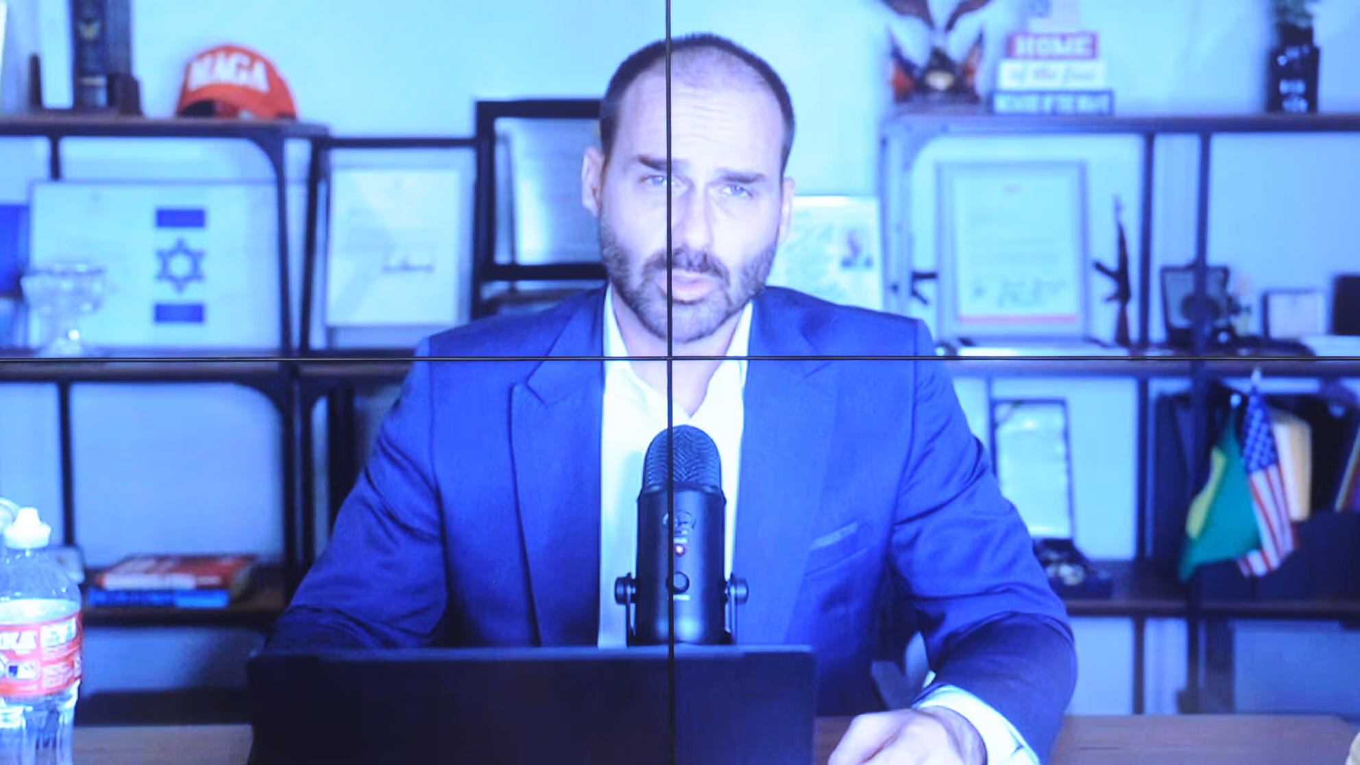 Eduardo é alvo de quatro pedidos de cassação no Conselho de Ética da Câmara por sua atuação nos Estados Unidos, três do PT e um do Psol. As siglas argumentam que o deputado incentiva o governo americano a aplicar sanções contra autoridades do Brasil.
