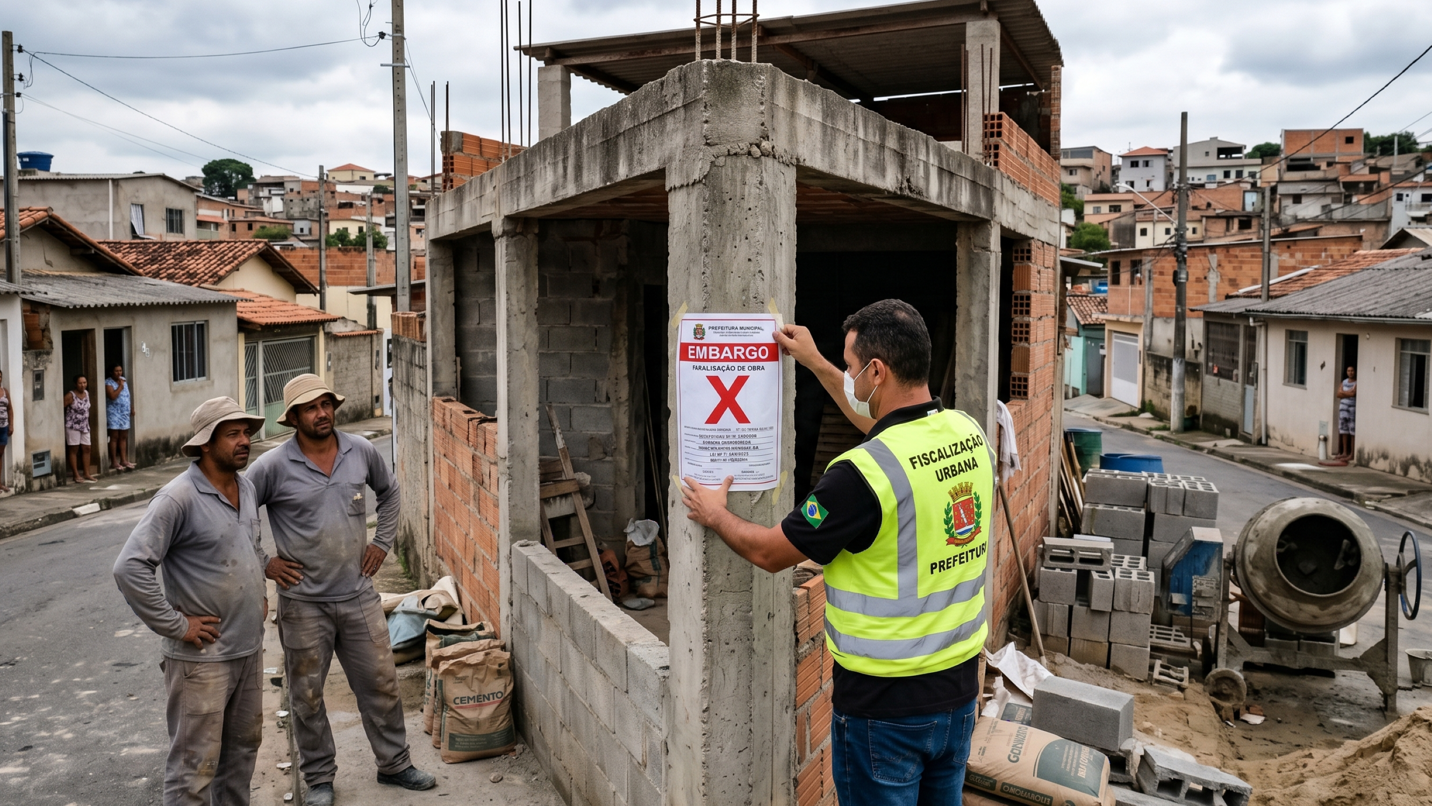 O cenário mais comum envolve notificação da prefeitura, paralisação da obra e abertura de processo administrativo. Dependendo do caso, o município pode determinar o embargo de obra, aplicar multa e exigir adequação ou desfazimento do que foi construído fora das regras locais.