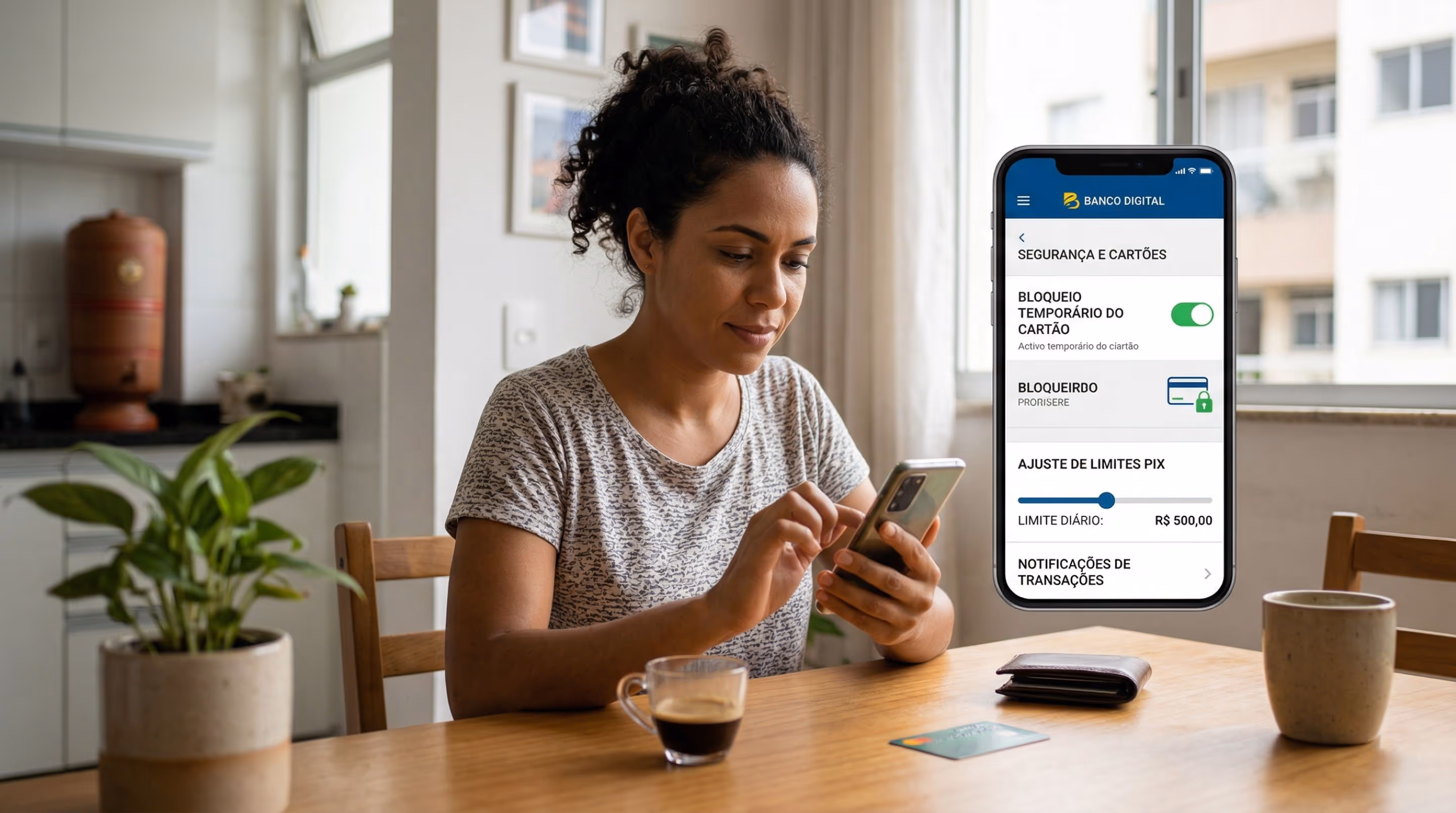 Esse painel de segurança costuma concentrar bloqueio temporário, cancelamento definitivo, definição de limites diários e alertas de transações. Assim, mesmo que criminosos tenham acesso a dados bancários, o valor máximo que pode ser movimentado sem interferência do titular permanece restrito.