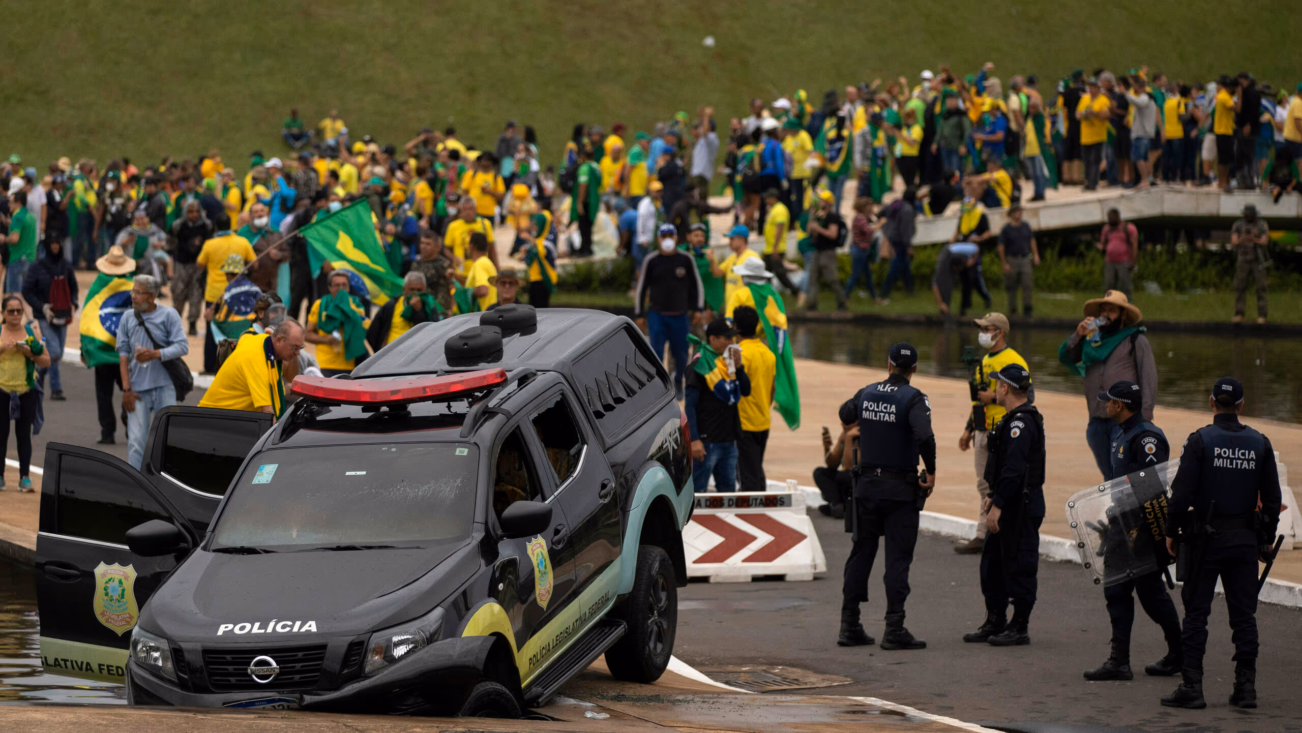 “A atuação da Polícia Militar do Distrito Federal (PMDF) nos eventos de 8 de janeiro de 2023 não pode ser compreendida como resultado de falhas pontuais ou imprevisões operacionais. Os fatos evidenciam uma atuação omissiva, dolosa e estruturada, cujo início remonta ao período anterior ao segundo turno das eleições presidenciais de 2022, prolongando-se até o momento da invasão e depredação dos prédios dos Três Poderes”, afirma Moraes.