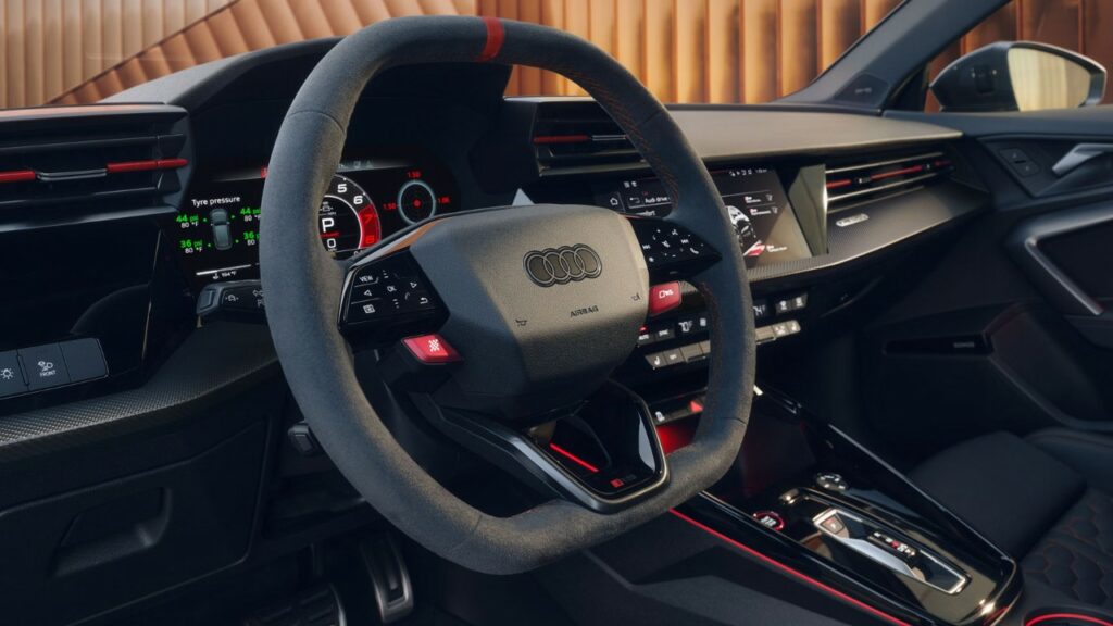 Apesar de seu caráter esportivo, o Audi RS3 é surpreendentemente prático para o uso diário. Com dimensões de 4.533 mm de comprimento, 1.851 mm de largura e 1.393 mm de altura, além de um entre-eixos de 2.631 mm, o modelo oferece espaço suficiente para quatro ocupantes e um porta-malas de 321 litros. Essas características tornam o RS3 uma opção versátil, capaz de atender tanto às necessidades cotidianas quanto ao desejo por performance nas pistas.