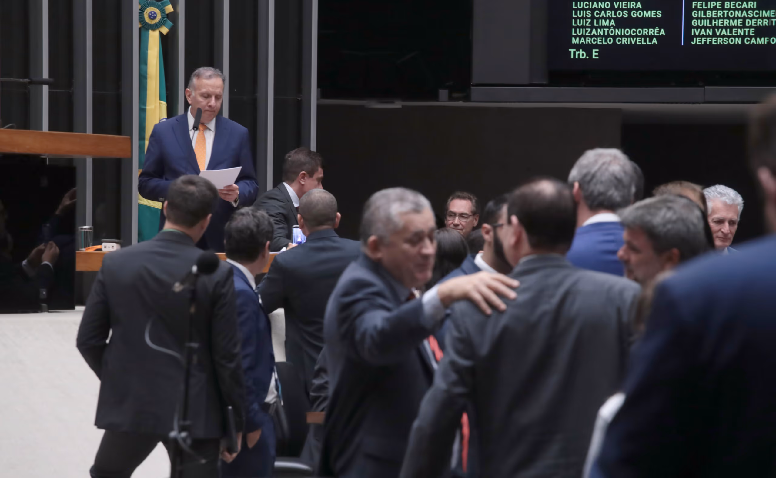 E a sessão vai continuar como se nada tivesse acontecido. Não é razoável, presidente. Para que que serve o Parlamento? O presidente deu como desculpa: ‘Não, mas não vai vir nada no texto que não tenha sido tratado no colégio de líderes’. Ah, eu não sou líder. A maior parte, tem 500 parlamentares aqui que não são líderes, que não estavam na reunião. Se é só o colégio, se é só o presidente que decide, então fecham o Parlamento. Vamos convocar as eleições do ano que vem só para líder e só pro presidente da Câmara. Porque, assim, qual que é a razão de eu estar aqui, eu ser eleito, eu ser escolhido por centenas de milhares de eleitores para decidir sobre o futuro do país e quando vem um texto de 20 bilhões de reais… E a gente sabe muito bem o que corre nesses bastidores sobre esses 20 bilhões de reais, não tem sequer o texto pra gente ler, pra gente saber o que que a gente tá votando.