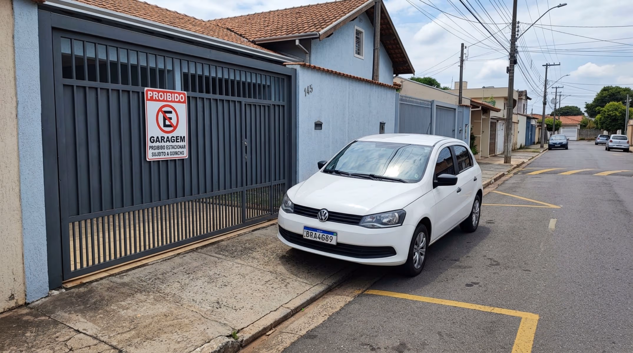 A sinalização oficial não transforma o trecho em área privada nem autoriza o próprio morador a estacionar livremente naquele espaço. A via pública continua sendo bem de uso coletivo após a instalação da faixa ou da placa, e o morador que estacionar em frente à própria garagem sinalizada poderá ser autuado da mesma forma, caso a conduta contrarie as normas de trânsito aplicáveis ao local. A sinalização protege o acesso, mas não cria uma vaga exclusiva na via pública.