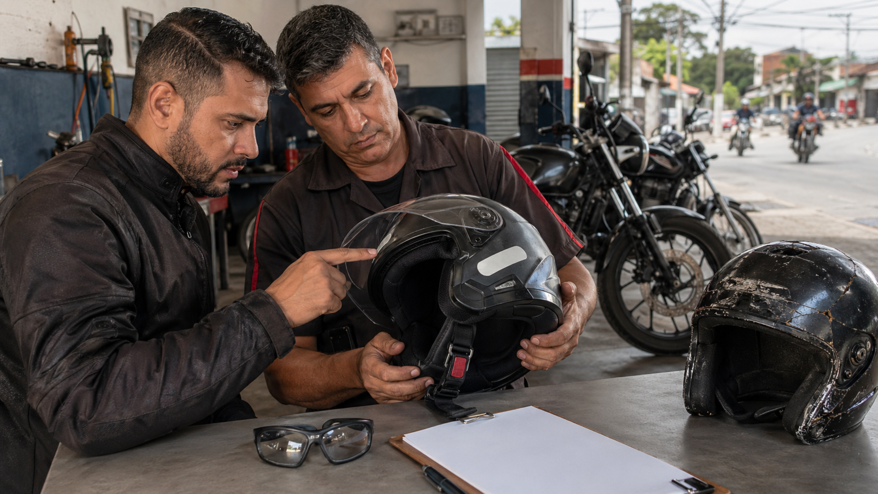 A troca deve ser considerada quando há queda forte, trinca, forração deformada, cinta danificada, viseira muito riscada ou casco com sinais de impacto. Mesmo sem autuação automática por “vencimento”, o material pode perder eficiência com uso, sol, suor e desgaste.