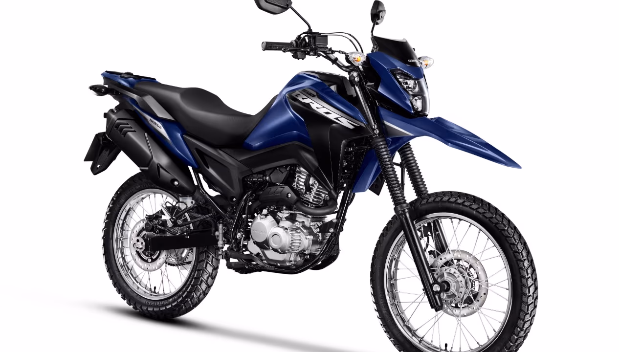 Os freios a disco nas duas rodas contam com CBS, que distribui a frenagem entre dianteira e traseira, e versões com ABS aumentam a segurança em piso molhado. Pneus de uso misto, com roda 19″ na frente e 17″ atrás, reforçam a vocação on/off-road do modelo.