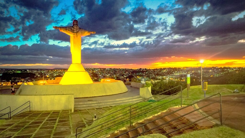 - Parque do Cristo: Localizado no ponto mais alto, oferece visão panorâmica e exige a subida de 236 degraus para os caminhantes.