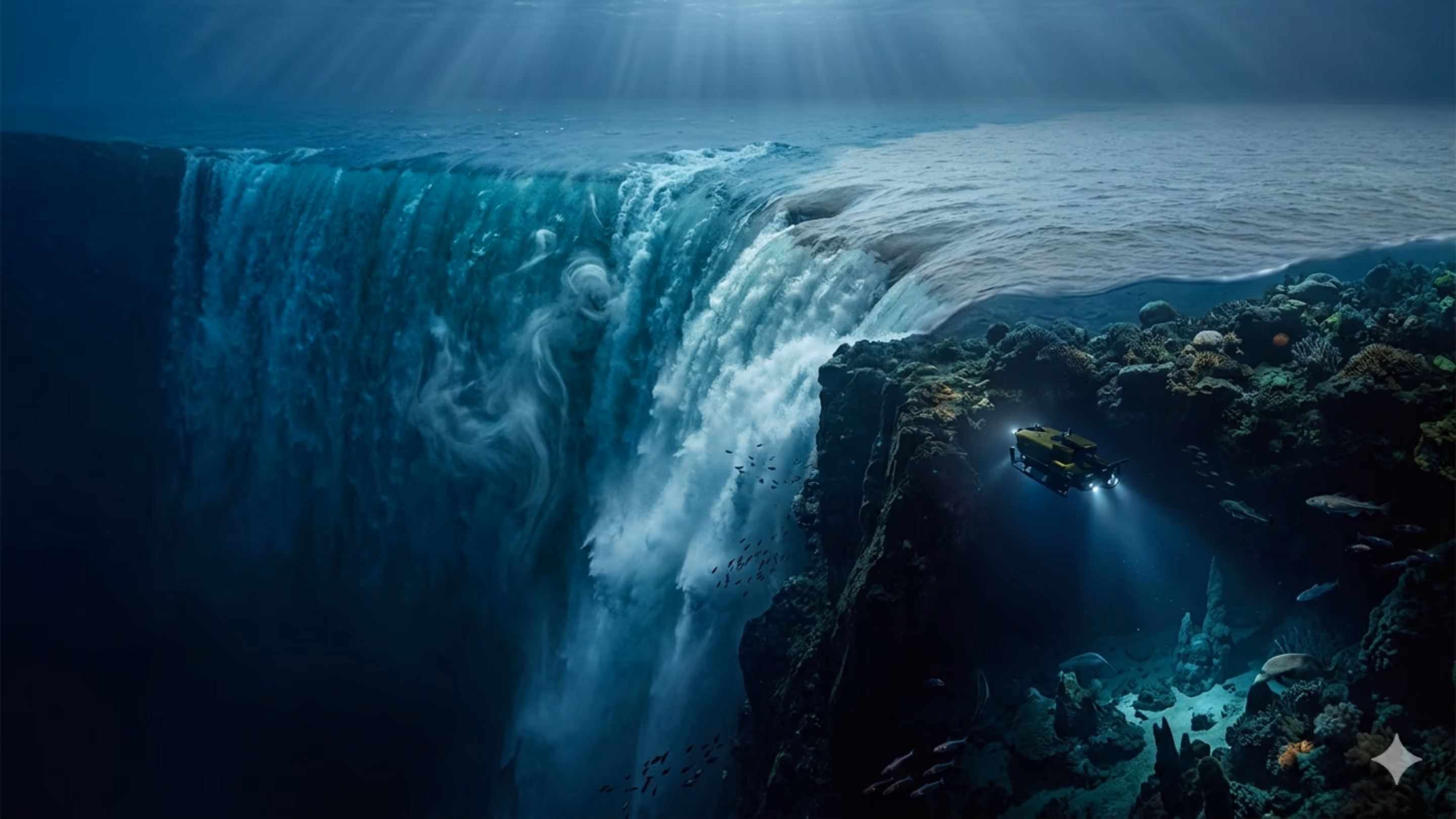 Essa queda d’água invisível integra a circulação termohalina, um “tapete rolante” global movido por diferenças de temperatura e salinidade.