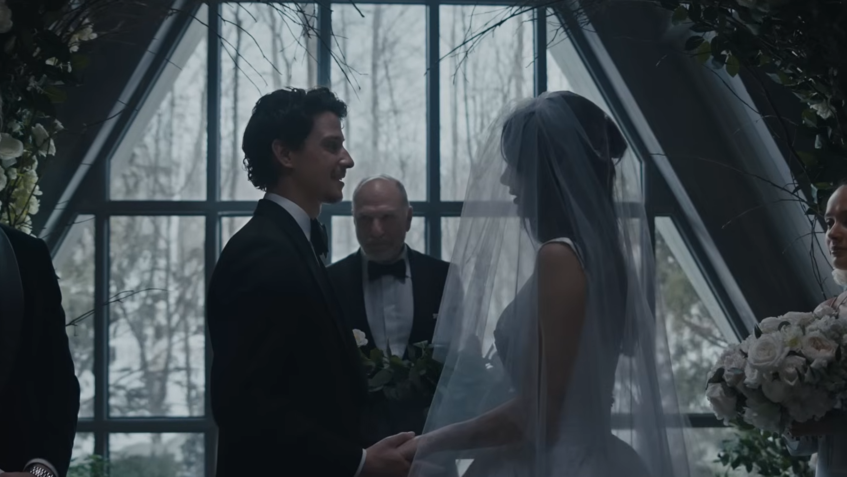 A premissa é direta e eficiente: durante um casamento, uma mulher viaja para a casa dos pais do noivo e, a partir daí, uma sequência de acontecimentos estranhos começa a deixá-la paranoica. O que era para ser acolhimento vira desconforto, e o ambiente passa a parecer uma armadilha.