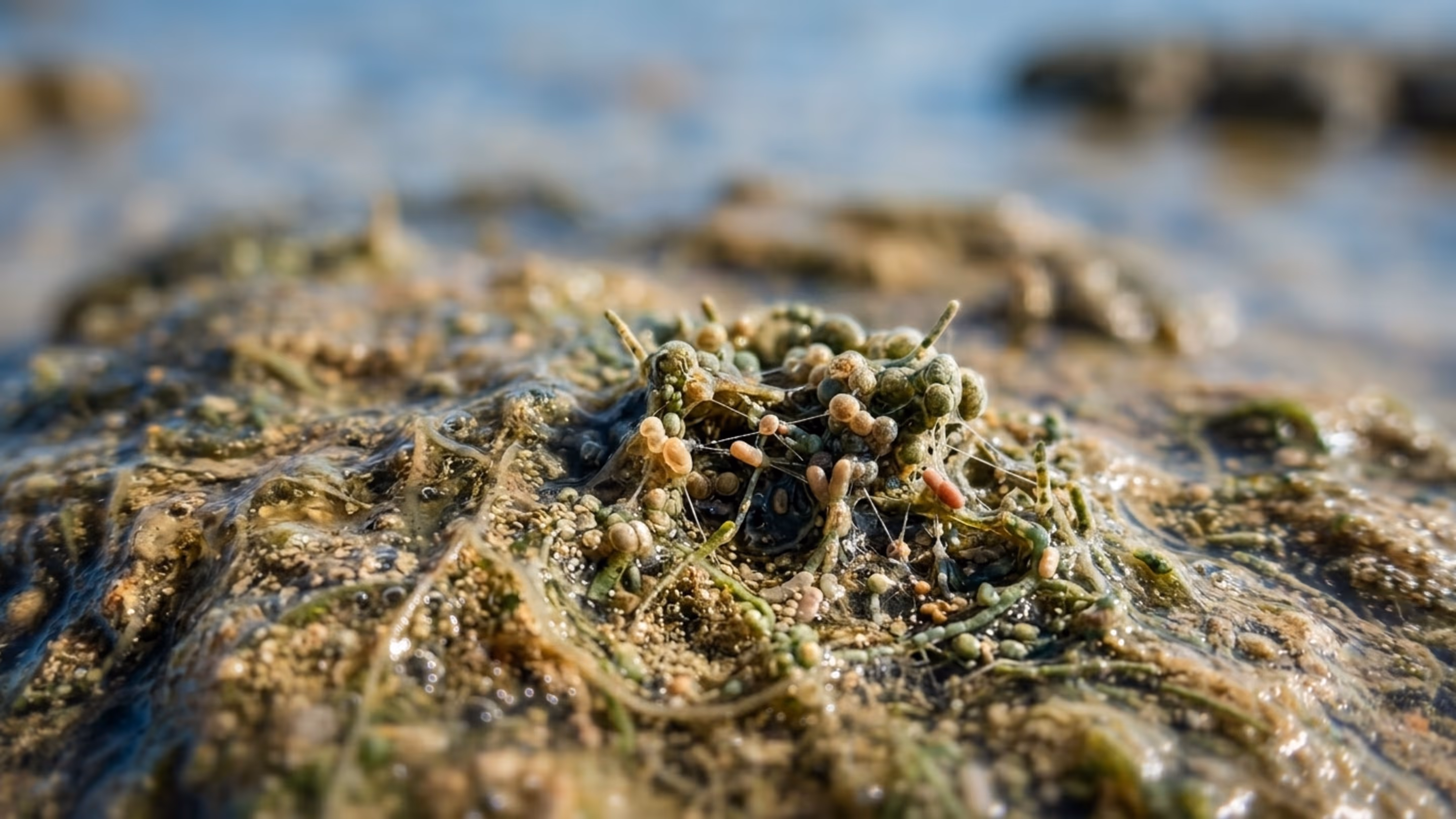 Tapetes microbianos e estromatólitos preservam processos que lembram ecossistemas de bilhões de anos atrás. Neles, uma aliança íntima entre arqueias e bactérias pode espelhar etapas cruciais na origem das células eucariotas.