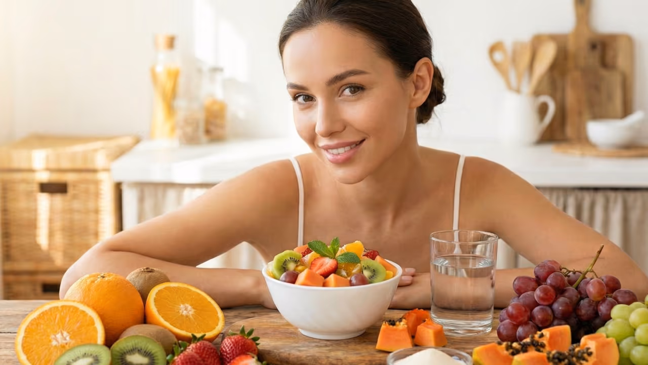 Uma alimentação equilibrada, rica em frutas, contribui diretamente para uma pele mais firme, luminosa e uniforme. O consumo regular favorece não só a aparência da pele, mas também a saúde do cabelo, das unhas e das articulações.