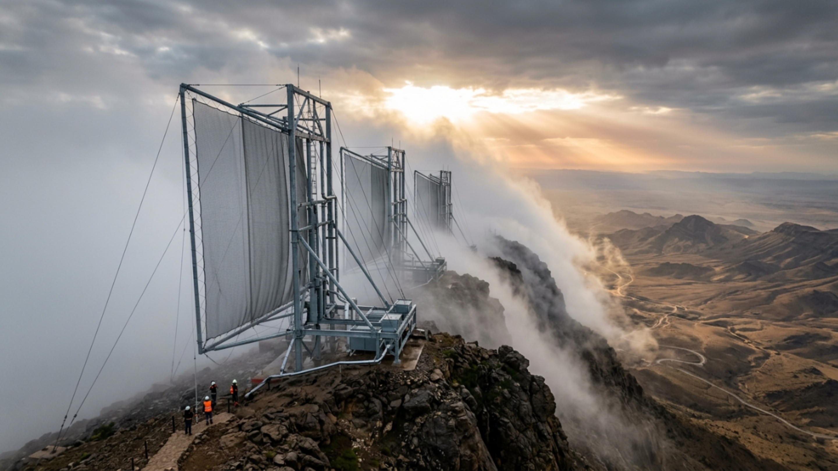 Apesar da aridez, montanhas como o monte Bout Mesguida recebem, em muitas manhãs, uma névoa fria vinda do Atlântico que cobre cristas rochosas, encharca árvores e pedras e depois evapora sem ser aproveitada. O que para moradores parecia apenas “tempo nublado” foi enxergado por engenheiros alemães como uma fonte diária de água sendo desperdiçada no céu.
