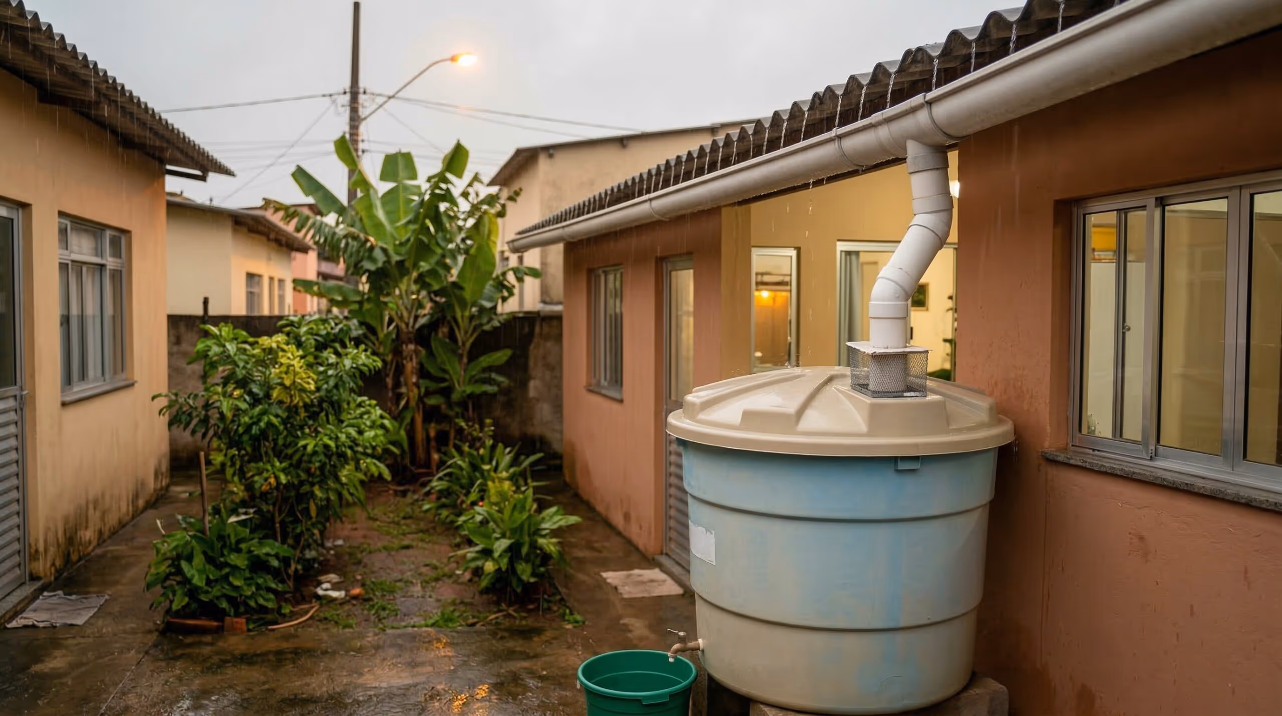 O impacto aparece direto na rotina: a água pluvial pode ser usada para regar jardins, lavar quintal e calçada, limpar áreas externas e abastecer descargas, reduzindo a dependência da rede pública e gerando economia financeira.