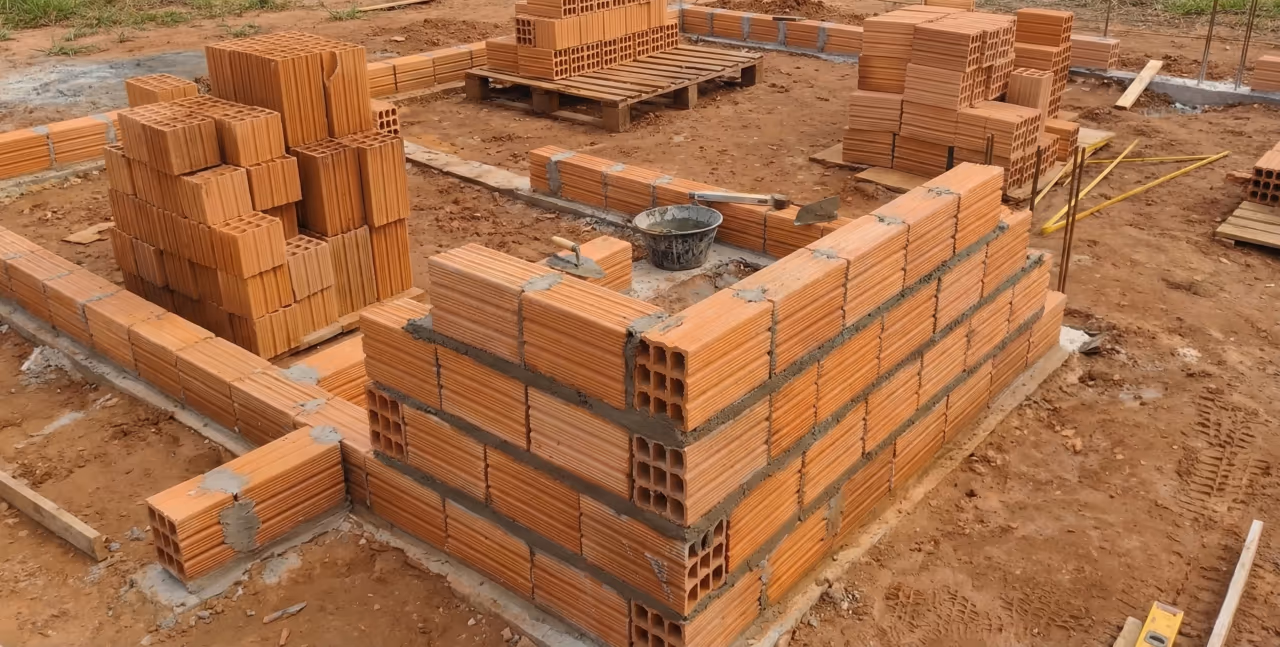 Mais do que empilhar tijolos, é preciso criar um encaixe firme entre as paredes, com boa amarração, controle da argamassa e conferência constante com régua, nível e prumo. Assim, o canto fica resistente, prumado e pronto para receber as próximas fiadas.