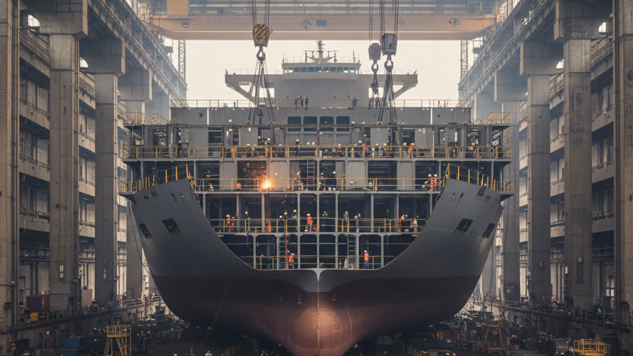 Como são construídos os navios gigantes nas maiores indústrias de construção naval do mundo?