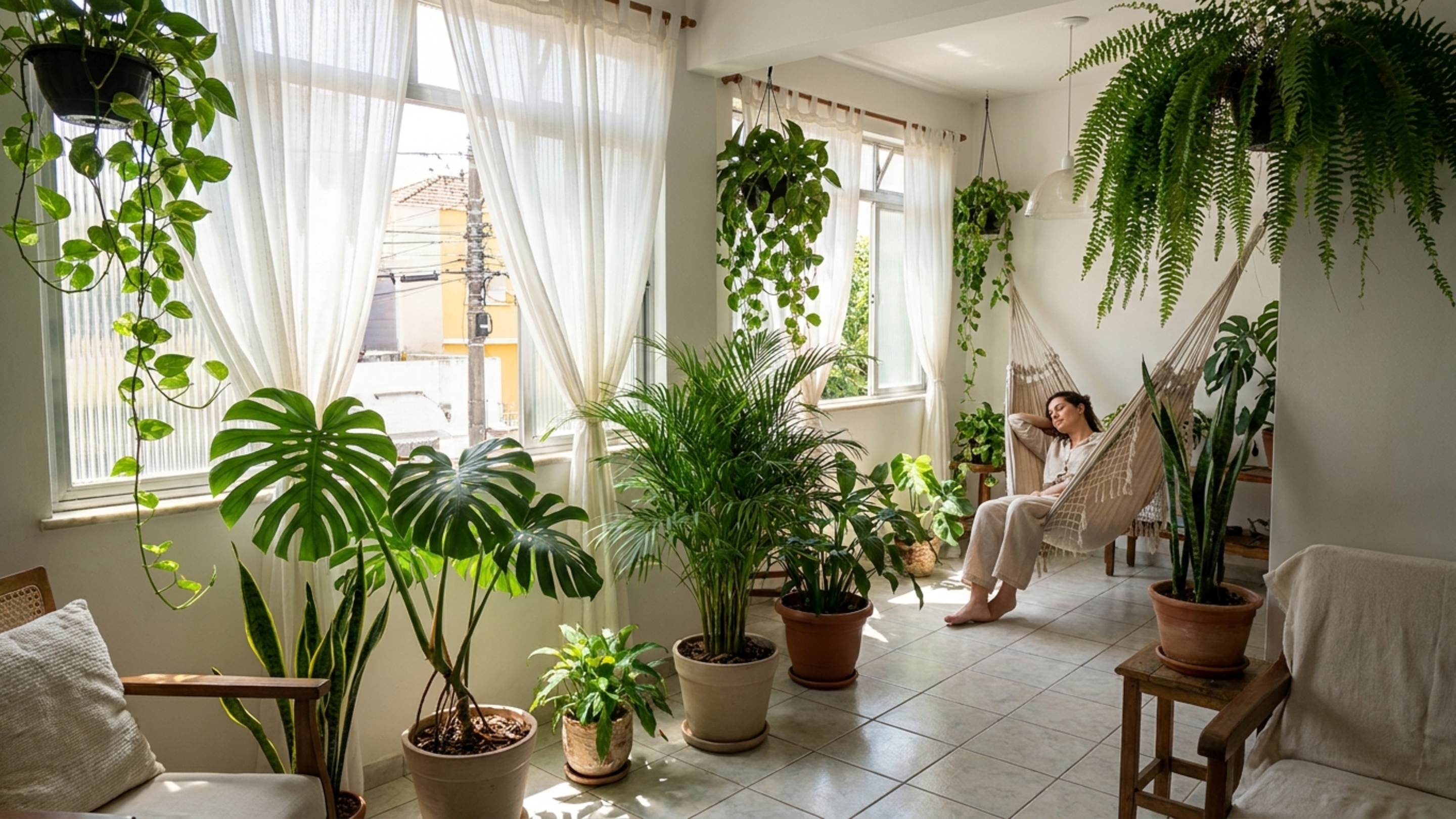 Com o tempo, o ambiente se torna mais equilibrado e agradável. A presença das plantas transforma não só a temperatura, mas também a sensação geral dentro de casa.