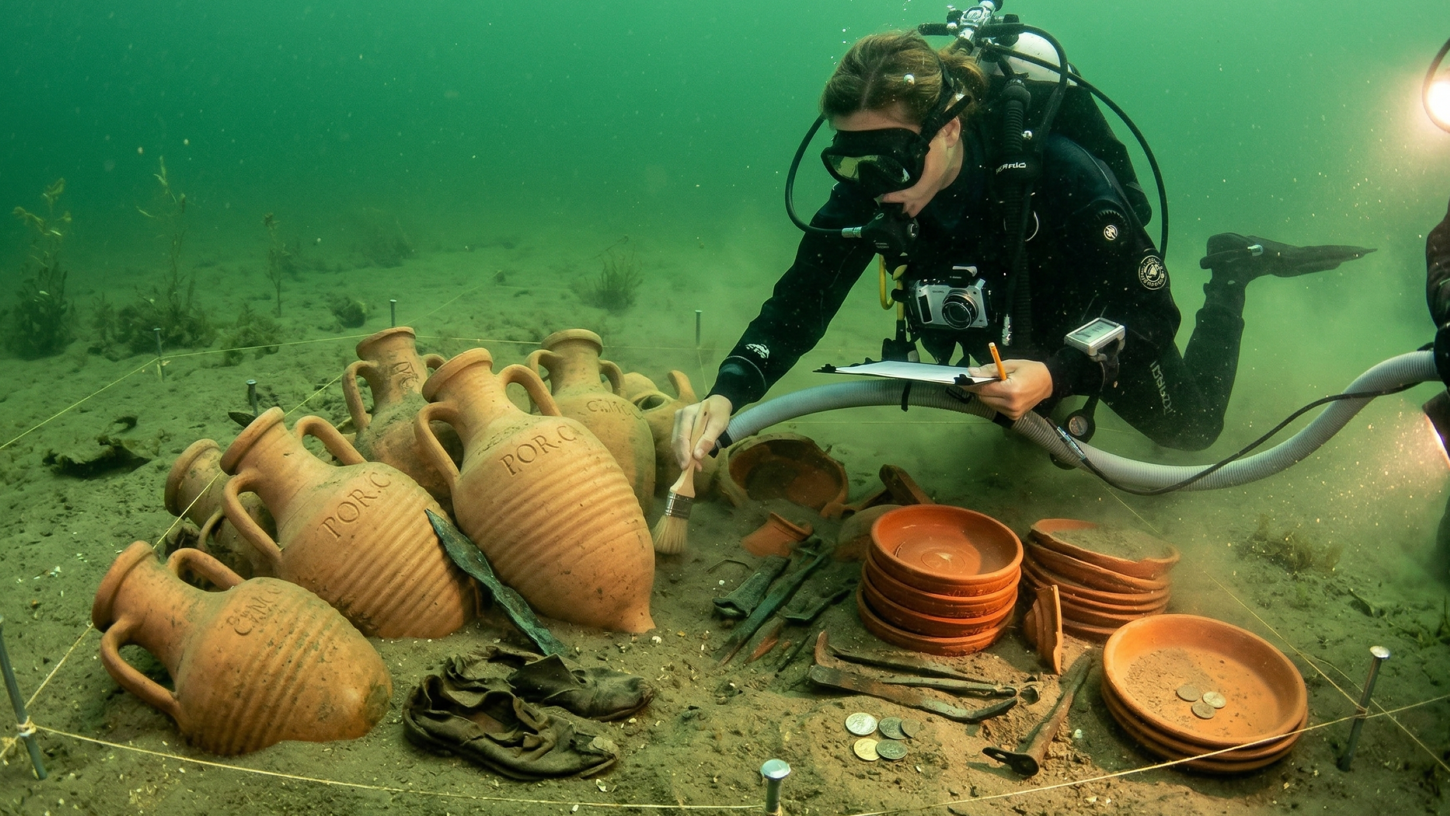 O detalhe mais impressionante é que os objetos apareceram concentrados, como se o tempo tivesse congelado a disposição original da carga. Isso reforça a ideia de que não se trata apenas de itens espalhados por acaso, mas de um retrato raro de uma operação real de transporte no mundo romano.
