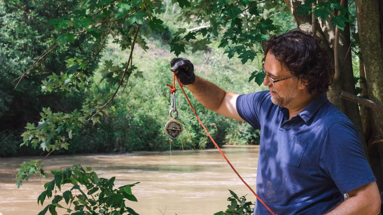 Misturar drone, corda, ímã pesado e um rio com correnteza forte não é simples. O vento desestabiliza o voo, as cordas enroscam, e em alguns momentos é preciso cuidado redobrado para não perder o equipamento na água suja.