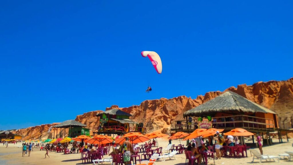 O Caribe do Ceará que combina falésias vermelhas, mar esverdeado e noites que nunca acabam