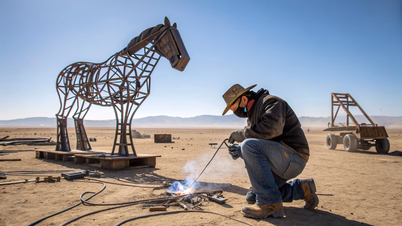 No meio do deserto mexicano, em lugar onde quase não há trabalho formal, artesão transforma sucata em esculturas, veículos em miniatura e animais de ferro cheios de detalhes. Com soldadora simples, paciência e prática, criou universo de arte reciclada.