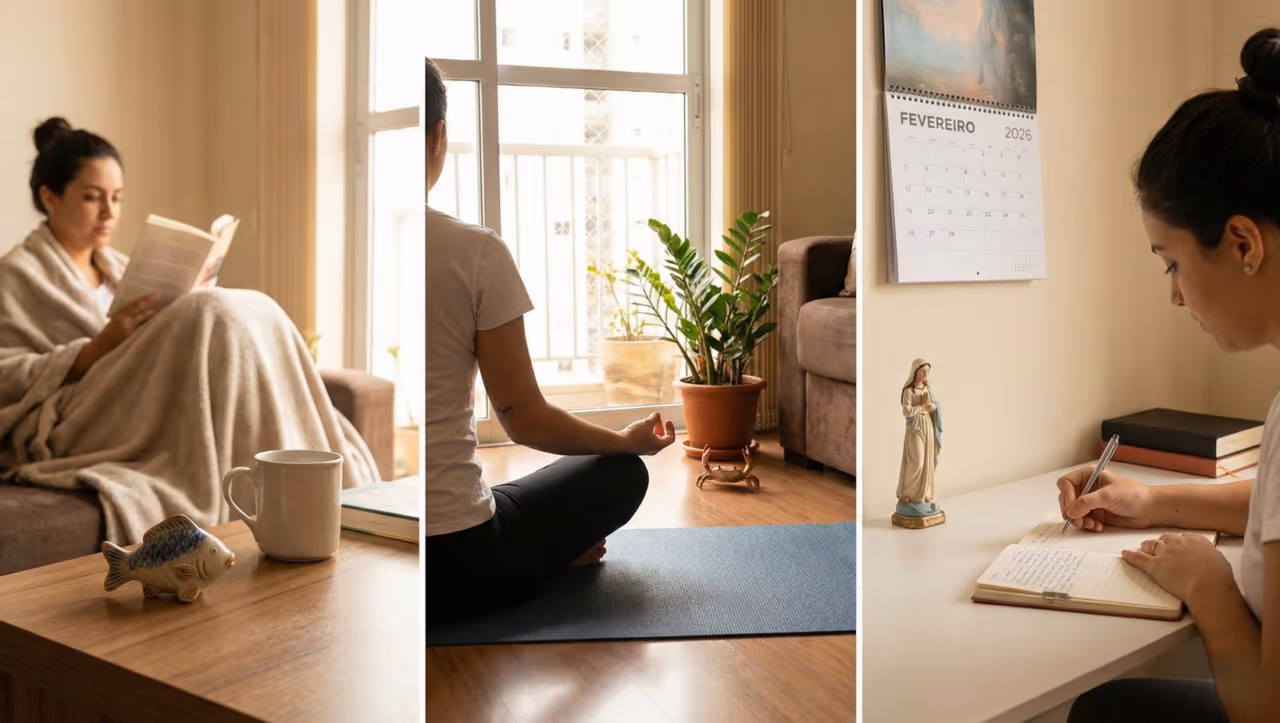 Descansar não é atraso. Para Peixes, Câncer e Virgem, fevereiro deixa claro que cuidar de si agora evita esgotamento depois.