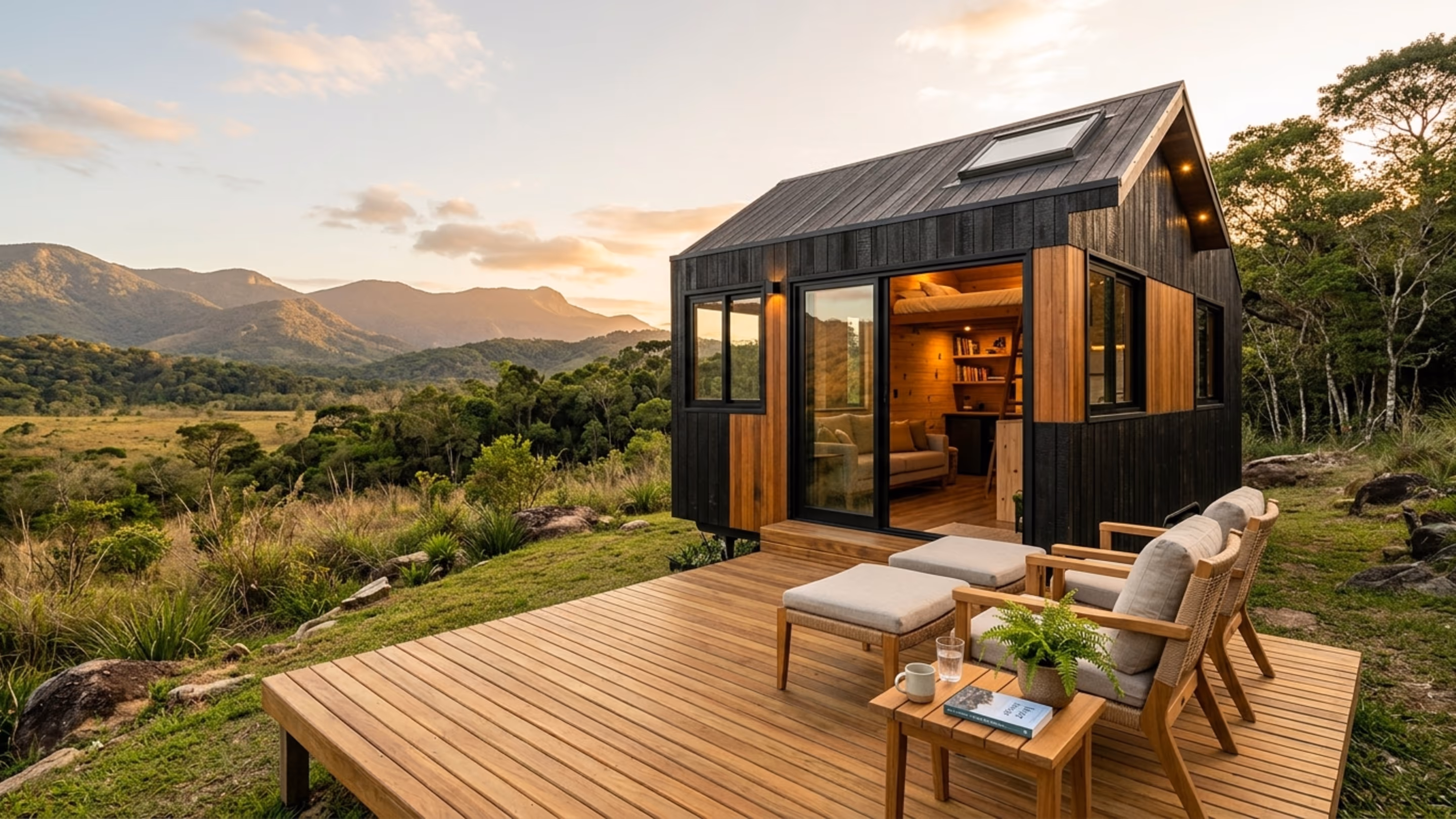 Que soluções tornam a tiny house um retiro completo e investimento de longo prazo?