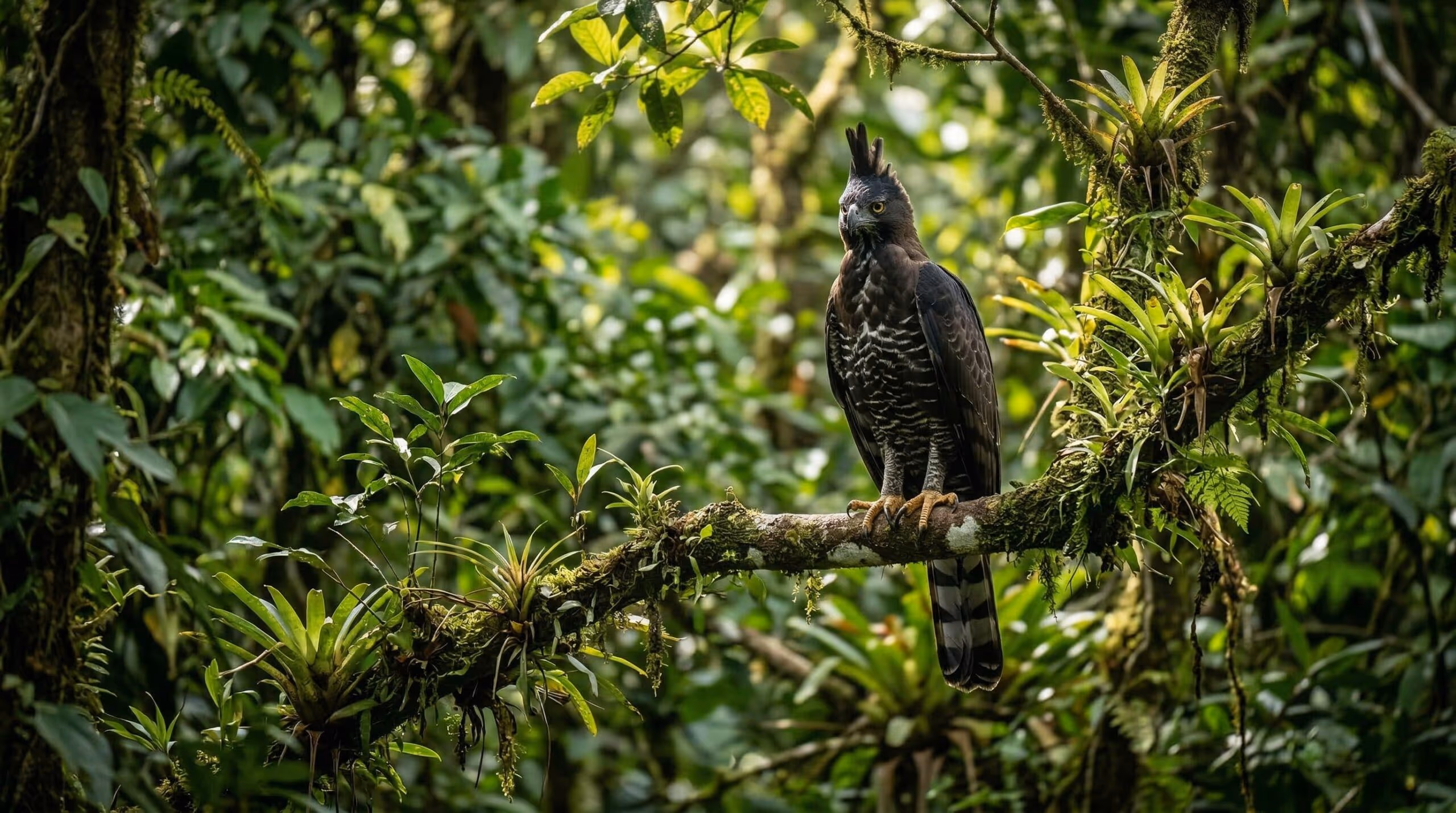 É o quase extinto gavião-pega-macaco (Spizaetus tyrannus) é uma ave de rapina de porte médio a grande, considerada imponente tanto pelo seu tamanho quanto pela sua envergadura.