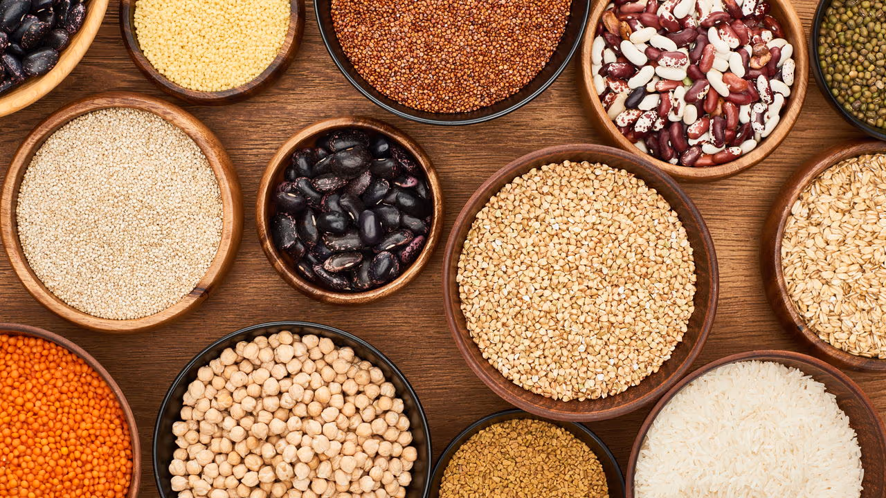 Aveia, arroz integral e quinoa são fontes de fibras e nutrientes essenciais que promovem saciedade e protegem o coração.