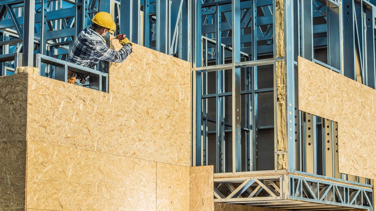 Execução da estrutura do piso superior, cobertura e aplicação de OSB, mesmo em condições de chuva.