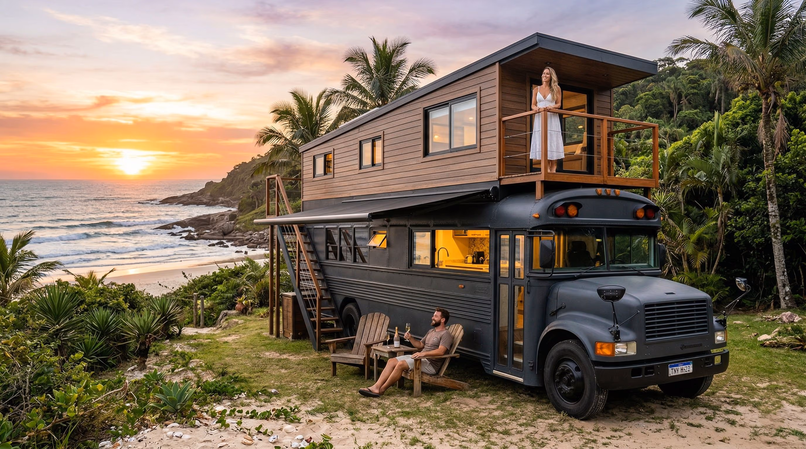 Mais que um projeto de engenharia e design, o ônibus-casa virou cenário de um momento marcante: após ajudar na obra sem saber do plano completo, Kelsey foi levada à praia com a tiny home finalizada e surpreendida com um pedido de casamento dentro da própria casa sobre rodas que ajudou a erguer, unindo criatividade, moradia alternativa e um gesto romântico inesquecível.