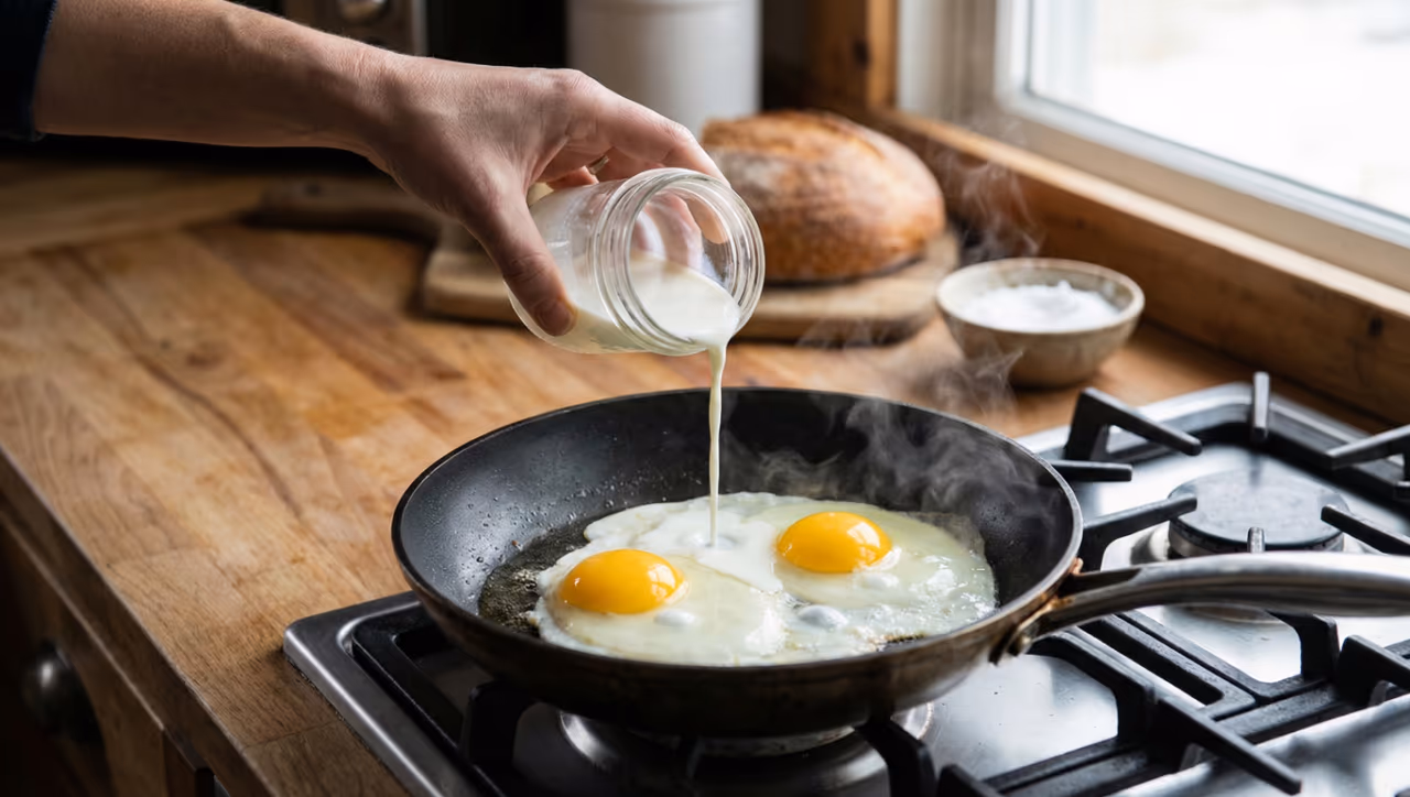 Um truque simples de cozinha voltou a circular com força nas redes: jogar leite na frigideira ao fritar ovos. A promessa é clara: ovos mais macios, claros bem cozidos, gemas cremosas e menos risco de queimar ou grudar. Mas será que isso funciona mesmo? E por que esse detalhe muda tanto o resultado?