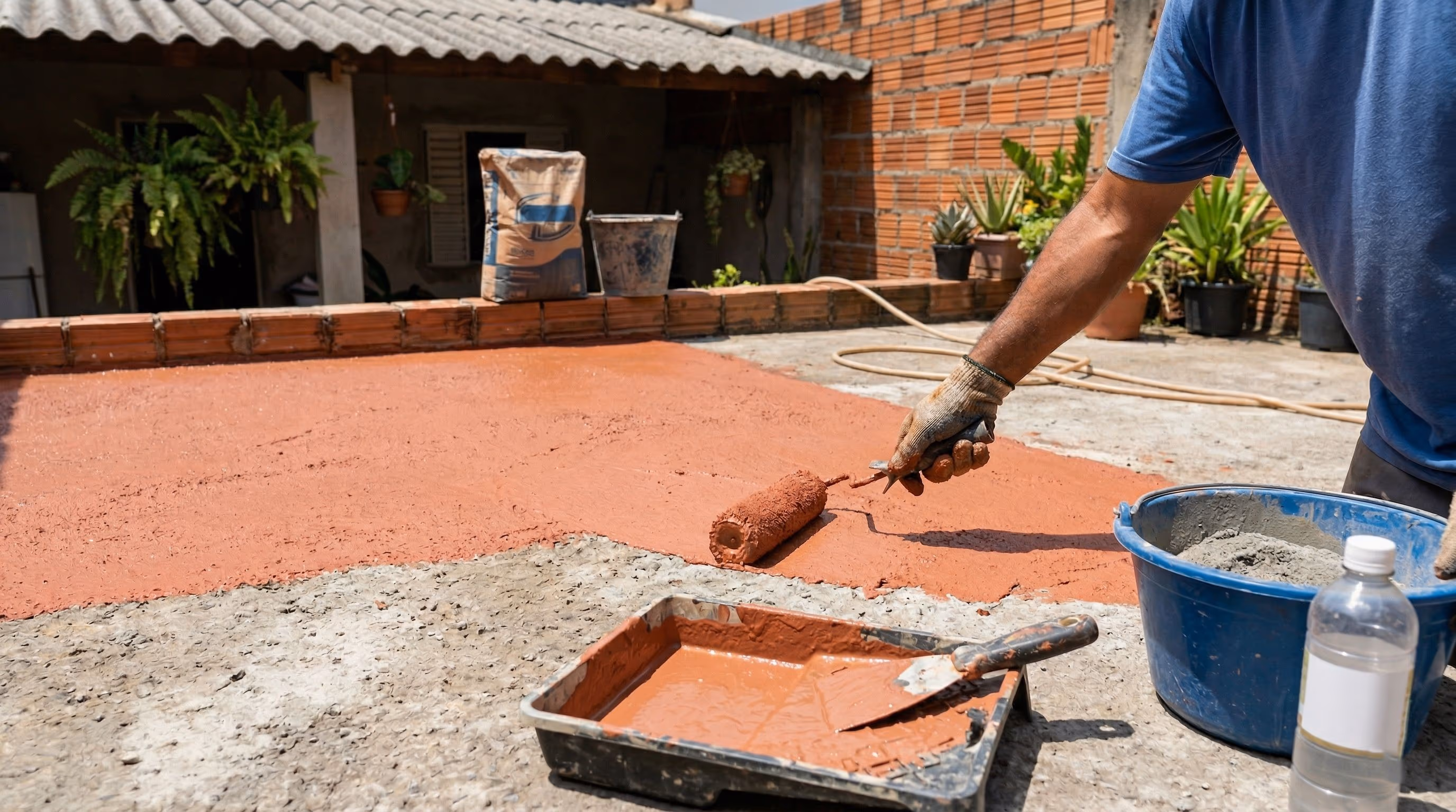 A mistura de cimento com resina acrílica cria uma camada resistente e impermeável para piso, laje e calçada, com aplicação simples e baixo custo
