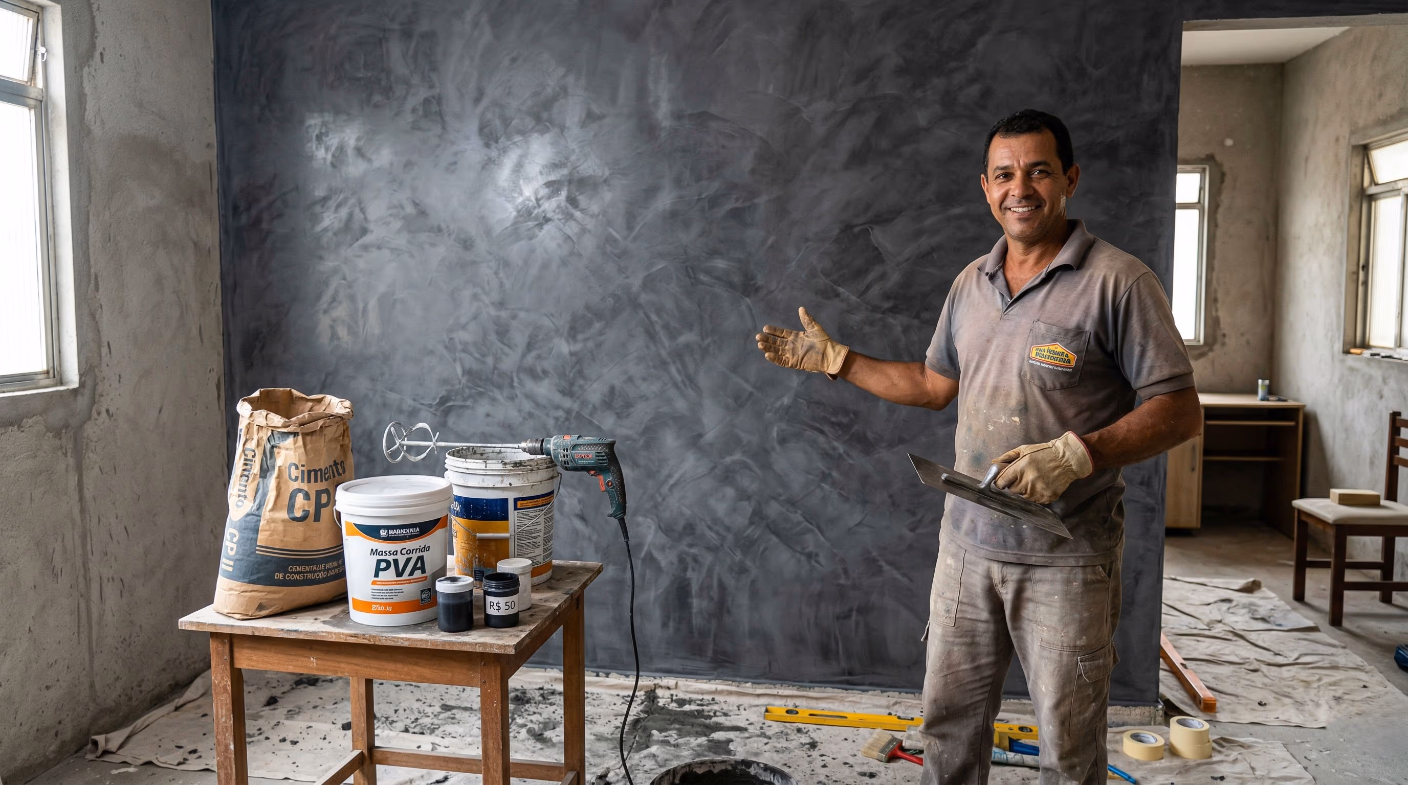 Um pedreiro mostrou que renovar uma parede pode ser barato e simples, criando um efeito de cimento queimado com uma mistura de cimento comum e massa corrida PVA, ideal para modernizar superfícies irregulares sem grandes reformas ou materiais caros.