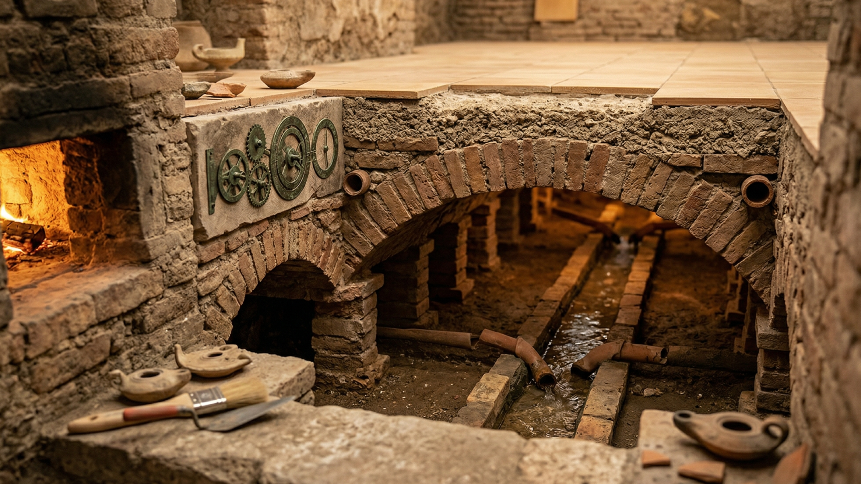 Também havia soluções ligadas ao conforto e ao hábito diário. O aquecimento romano, os sistemas de água e até mecanismos automáticos mostram que a busca por praticidade, higiene e previsibilidade não começou agora.