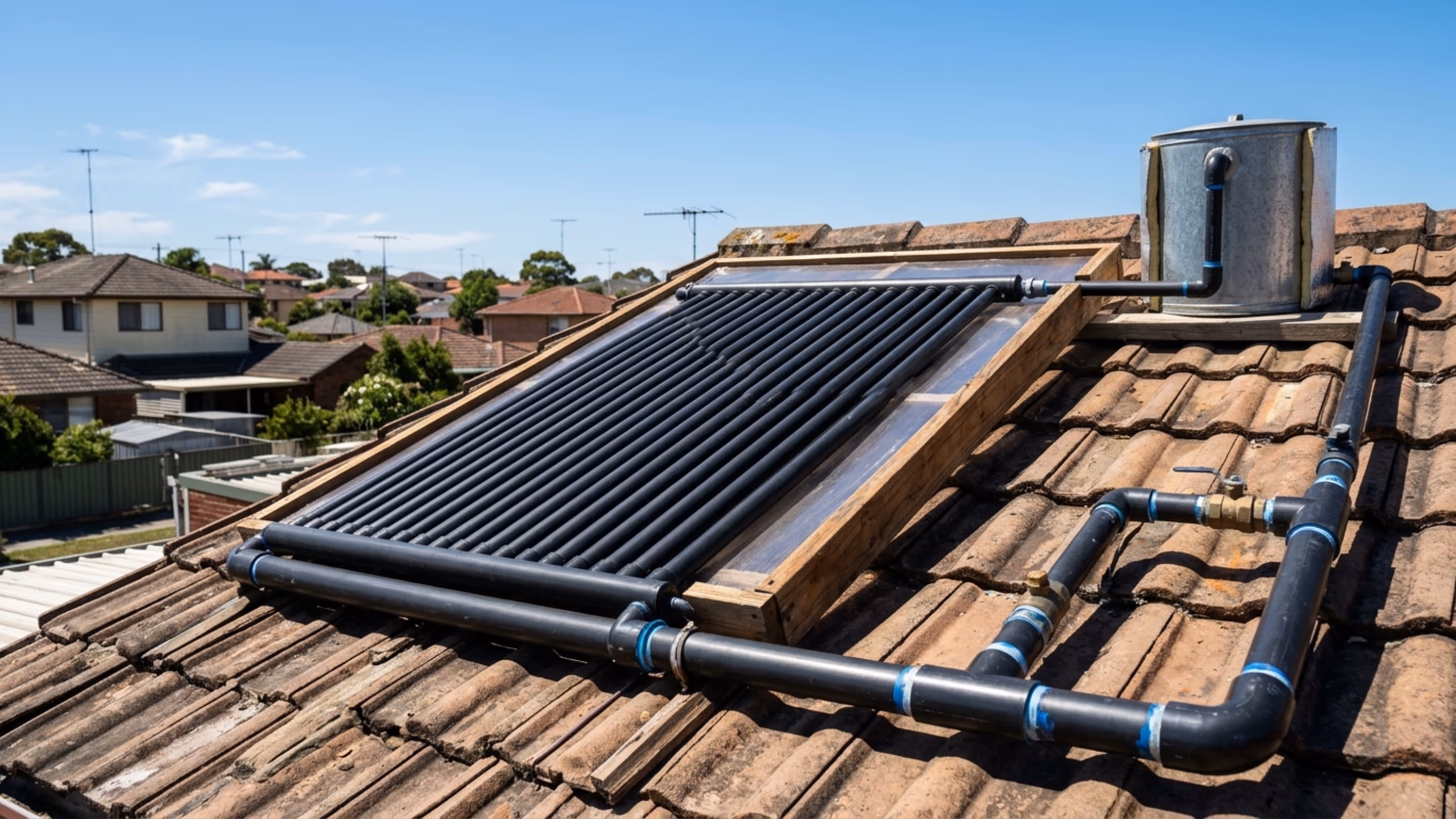 O princípio é o mesmo dos sistemas profissionais, baseado na absorção de calor e circulação natural da água. Quando exposta ao sol, a água dentro dos tubos aquece e se torna mais leve, subindo naturalmente.