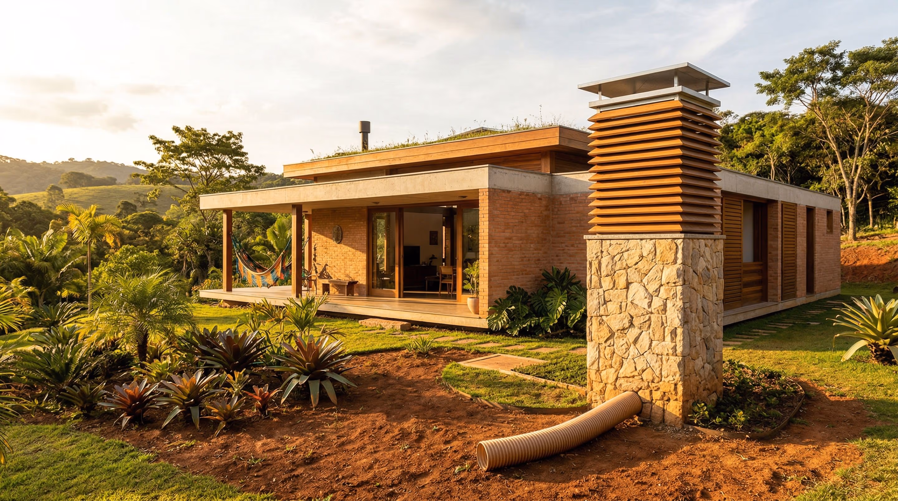 Ao pré-condicionar o ar, o tubo de terra transforma o comportamento do sistema de climatização: o equipamento mecânico faz ajustes menores, reduz picos de consumo e tende a durar mais. Com isso, a casa fica mais integrada ao clima local e menos dependente de máquinas operando no limite.
