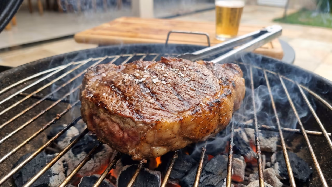 Depois de selar, basta afastar da brasa para terminar o cozimento com calma. Na hora de servir, cortar sempre contra as fibras é essencial para garantir um churrasco suculento.