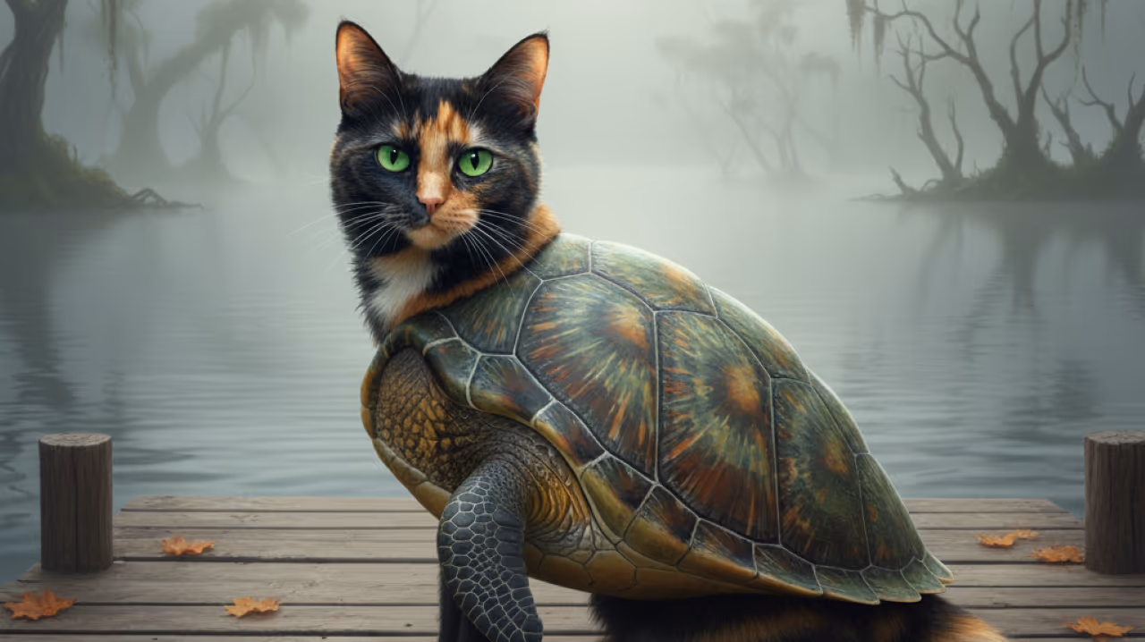 Os gatos tartaruga destacam-se por uma mistura irregular de preto e laranja que cria um efeito quase em mosaico. Alguns podem apresentar pequenas manchas brancas, mas isso varia de gato para gato. Curiosamente, cada padrão é exclusivo, funcionando como uma verdadeira impressão digital: não existem dois gatos tartaruga exatamente iguais.