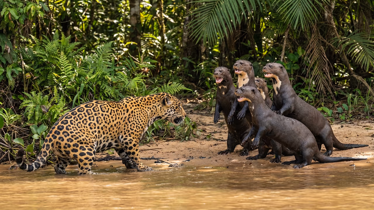 O encontro entre onça-pintada e ariranhas mostra como diferentes predadores compartilham o mesmo ambiente e ajustam seus comportamentos em disputas por território e presas. Nem sempre o animal maior ou mais forte domina todas as situações.