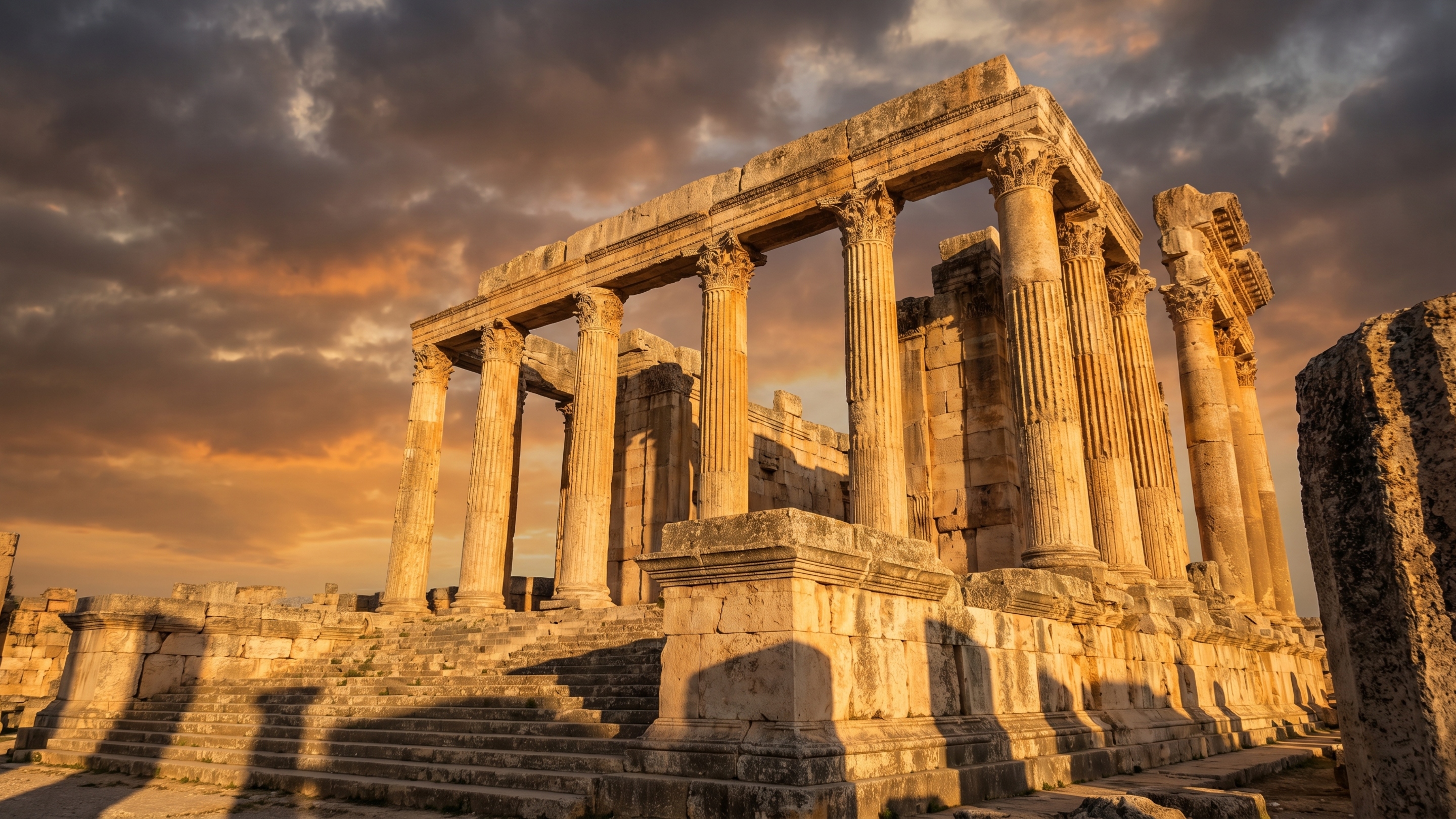 Baalbek, no atual Líbano, é conhecido como um grande complexo romano, mas seus blocos ciclópicos e colunas de granito rosa levantam dúvidas sobre a origem das partes mais antigas do sítio. Esse granito é associado à antiga Pedreira de Assuã, no Egito, a cerca de 1.500 km de distância, o que torna intrigante o transporte e o encaixe de peças com mais de 10 toneladas na Antiguidade.