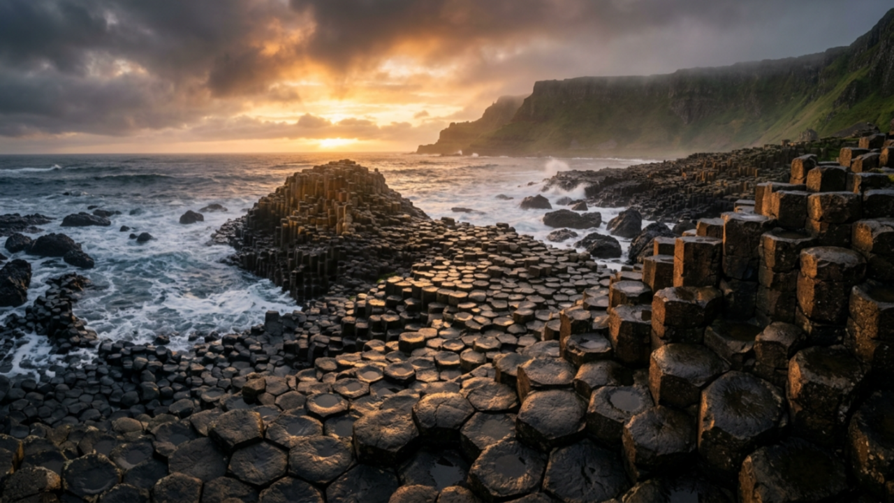 Alguns locais unem formações únicas e tradições que atravessam milênios. A Calçada dos Gigantes, na Irlanda, reúne cerca de 40 mil colunas de basalto encaixadas lado a lado, muitas hexagonais, formadas pelo rápido resfriamento de lava em contato com a água do mar há cerca de 60 milhões de anos.