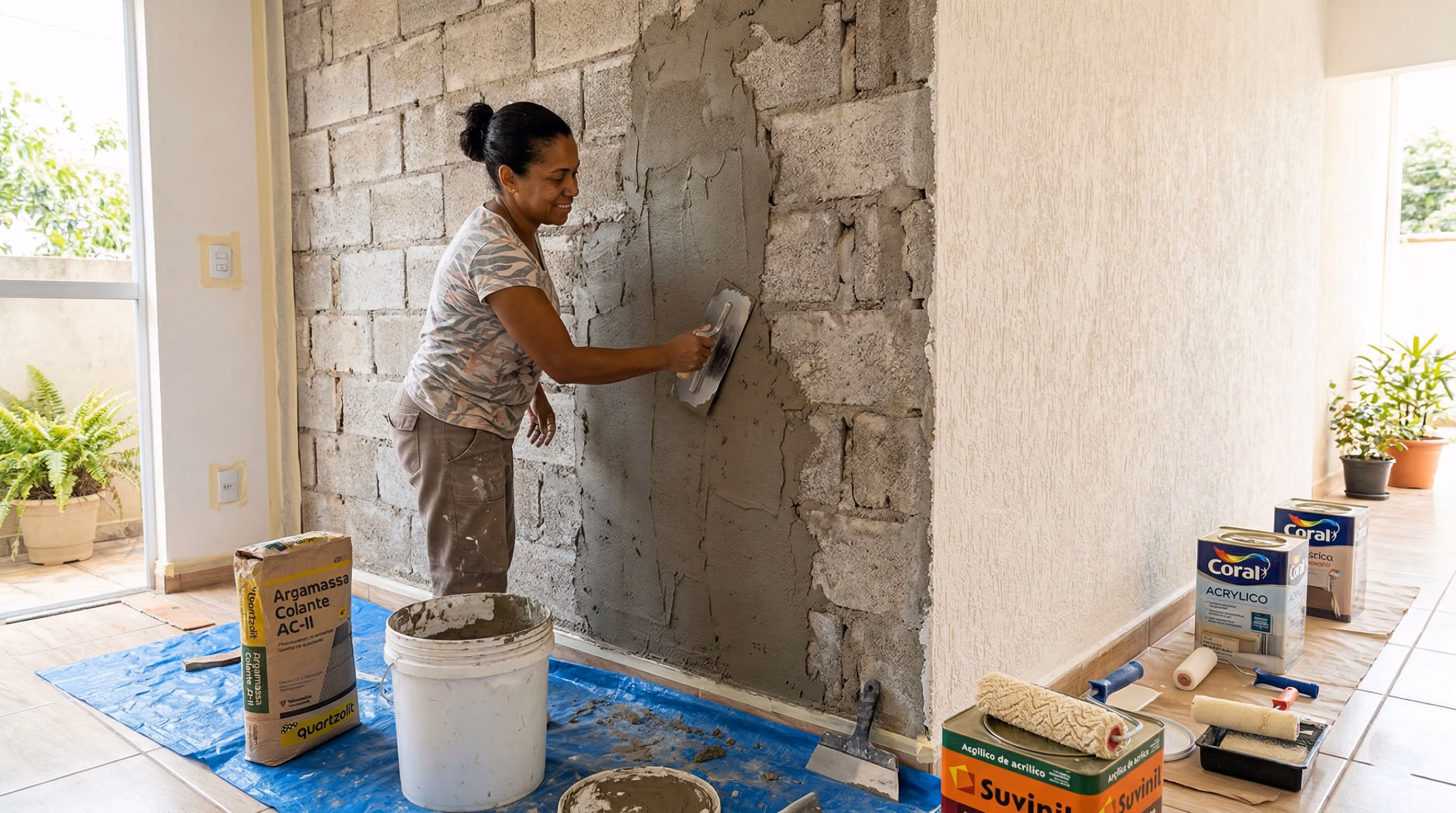 O reboco convencional exige mais material, tempo de serviço e, muitas vezes, mão de obra especializada, encarecendo a reforma. Em paredes de bloco aparente e irregular, isso pesa no orçamento e aumenta o prazo de conclusão.