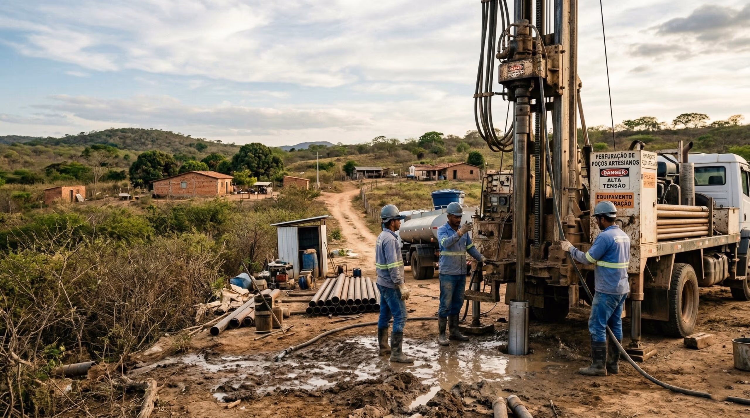 Para perfurar um poço regular, não basta contratar a obra: é necessária outorga de uso da água pelo órgão estadual. O processo inclui licença prévia, estudos hidrogeológicos, análise de qualidade, definição de vazão e, muitas vezes, instalação de hidrômetro para monitorar a captação.
