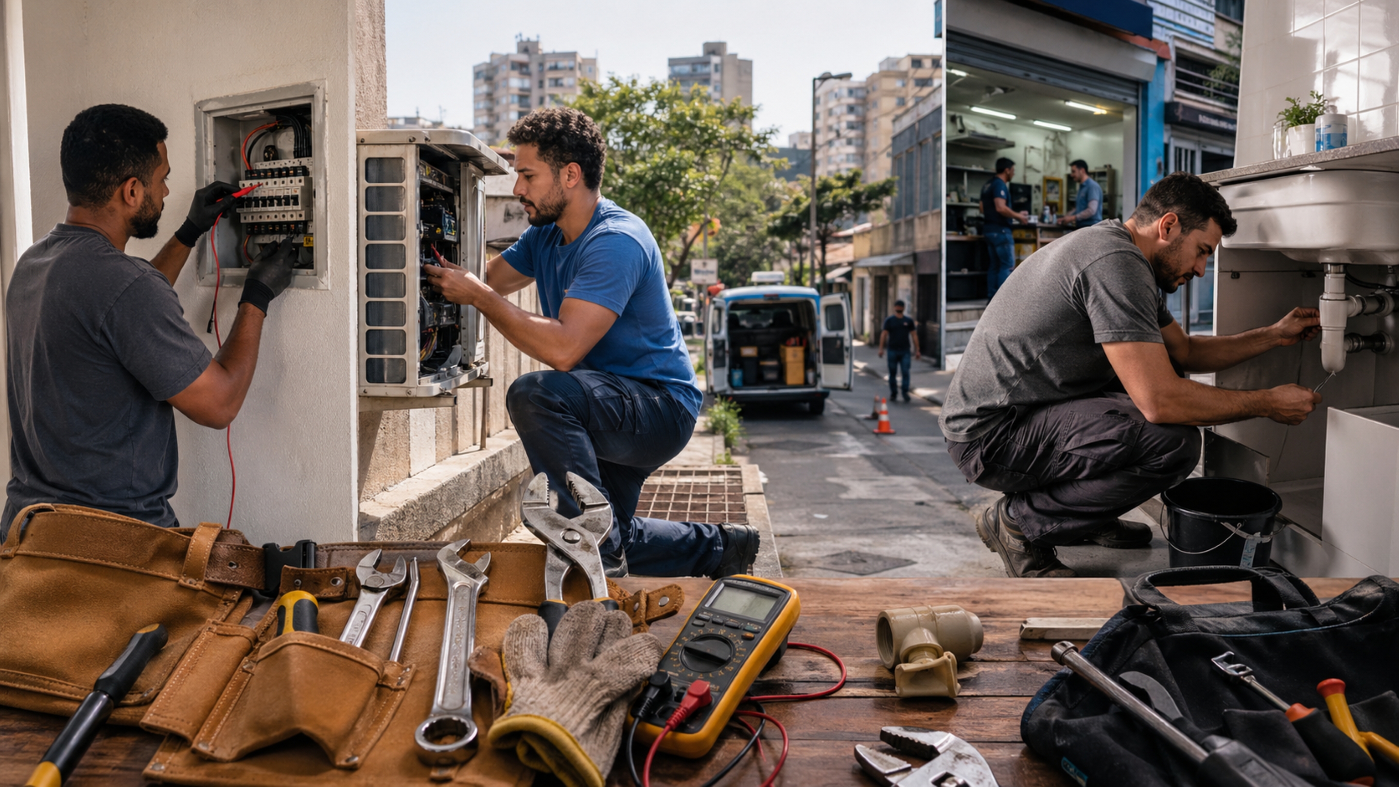 Também pesa a urgência do serviço. Quem conserta vazamento, instala ar-condicionado, resolve pane elétrica ou faz manutenção em empresa costuma ser chamado quando o problema já está causando prejuízo.
