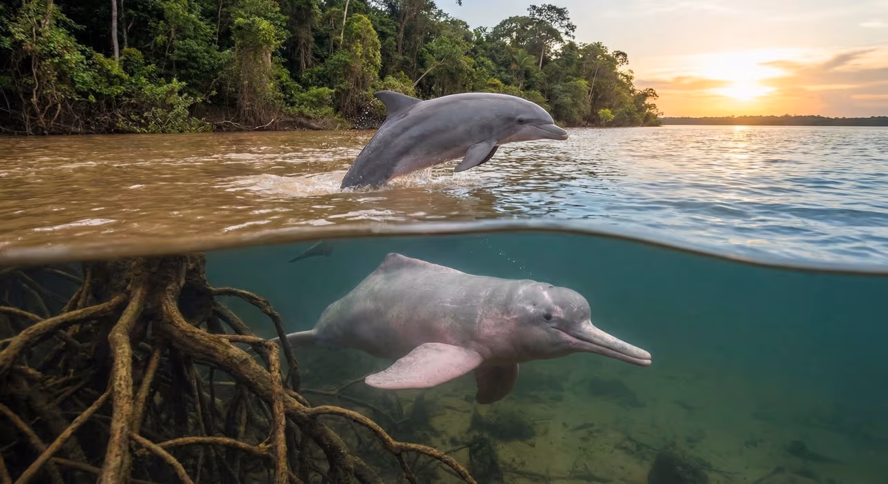 Golfinhos são mais comuns em mares e oceanos; botos habitam principalmente rios e ambientes de água doce.